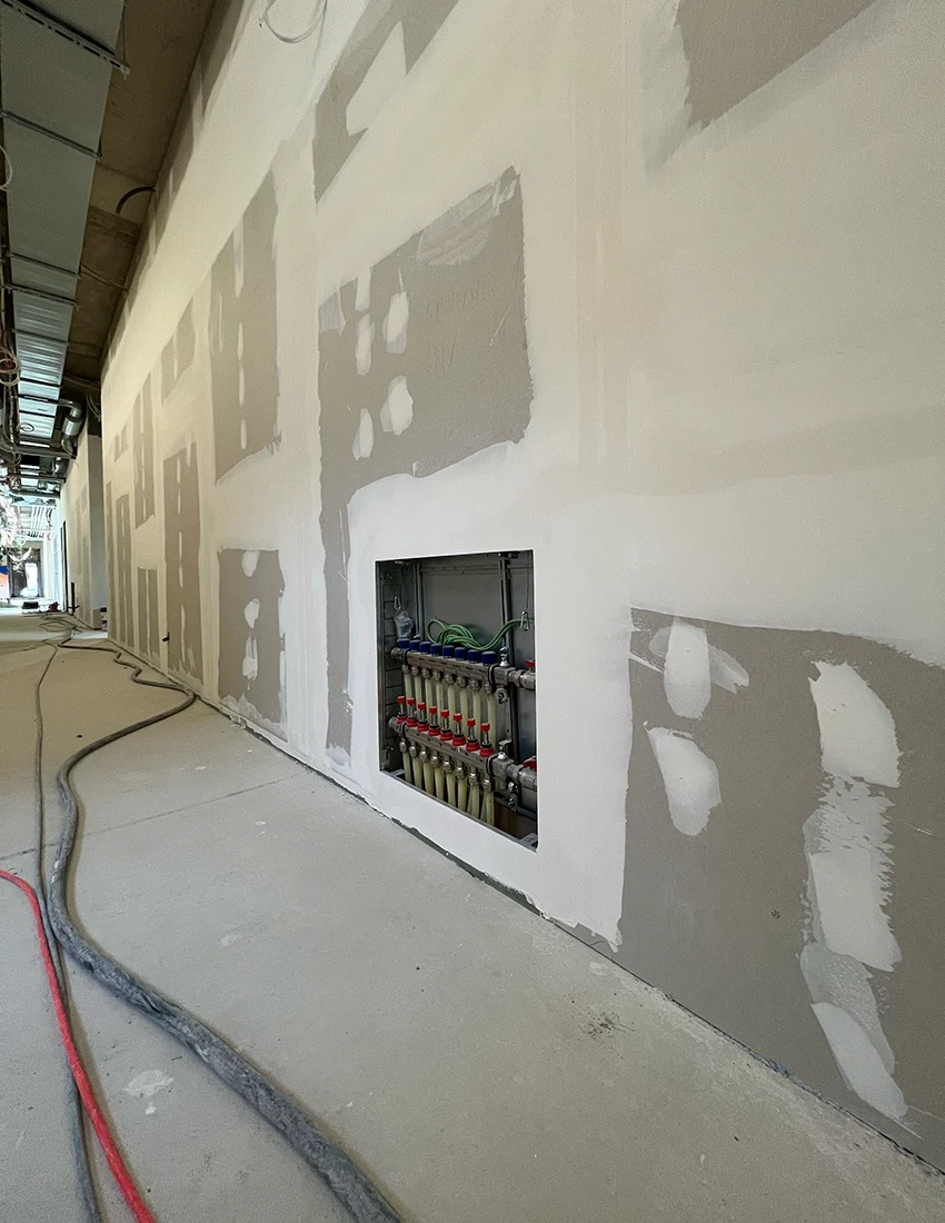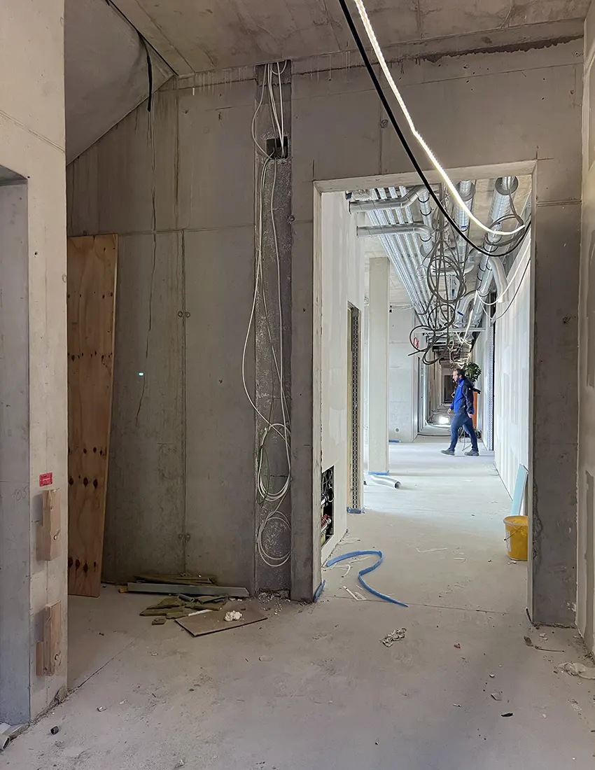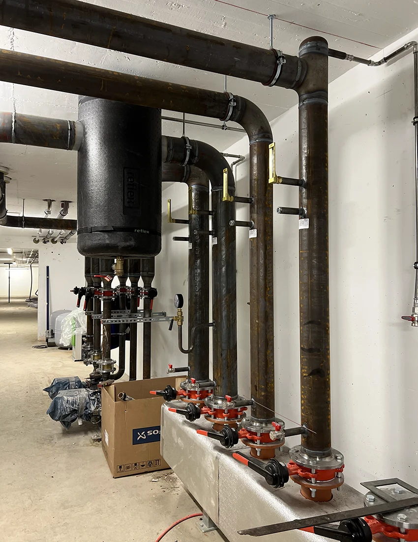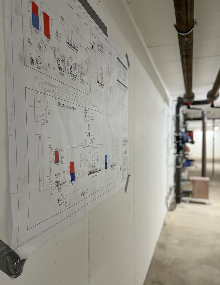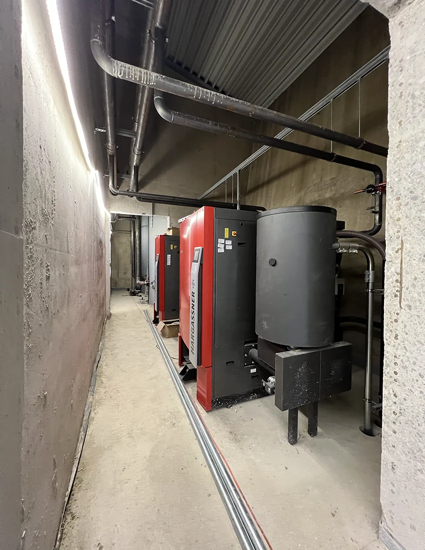 KW42 – Nach dem Transport, Aufbau und der erfolgreichen Montage des 18 Meter hohen Schornsteins wurden inzwischen auch die Hargassner-Heizungsanlage sowie die Gasanlage von Reflex vollständig installiert. Zudem schreiten die Arbeiten an den neuen Sanitärräumen weiter voran. Weitere Einblicke folgen bald!